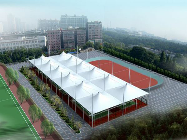 PTFE膜結(jié)構(gòu)羽毛球場優(yōu)勢:PTFE膜結(jié)構(gòu)羽毛球場擁有良好的力學(xué)性能、出色的耐候性、自潔性、透光性、造型美觀、施工便捷等優(yōu)勢。PTFE膜材具有較高的抗拉強度、撕裂強度和抗疲勞性能,能夠承受風(fēng)雨、積雪等自然荷載,確保羽毛球場屋蓋在各種氣候條件下的安全性和穩(wěn)定性,可滿足不同規(guī)模和使用要求的羽毛球場建設(shè)。還具有良好的耐候性和耐化學(xué)腐蝕性,能抵御酸、堿、鹽等化學(xué)物質(zhì)的侵蝕,在紫外線長期照射下,不易褪色和老化,可延長羽毛球場的使用壽命。PTFE膜材表面光滑,不沾灰塵和污垢,雨水沖刷即可保持表面清潔,使羽毛球場外觀始終保持整潔美觀,減少了后期的清潔維護(hù)工作和成本。膜材具有良好的透光性,能夠讓陽光透過屋頂灑進(jìn)場地內(nèi),營造出明亮而溫暖的環(huán)境,白天無需開燈也能保證充足的照明,不僅節(jié)省能源,還能為運動員和觀眾提供舒適的視覺體驗。PTFE膜結(jié)構(gòu)可以通過設(shè)計不同的形狀、曲線和色彩,創(chuàng)造出獨特而美觀的建筑造型,為羽毛球場增添現(xiàn)代感和藝術(shù)氛圍,使其成為城市景觀的一部分。膜材質(zhì)量輕,安裝過程更加便捷高效,大大縮短了施工周期。同時,膜結(jié)構(gòu)的裁剪和拼接可以在工廠預(yù)先完成,減少了現(xiàn)場施工的工作量和難度,提高了施工效率。
