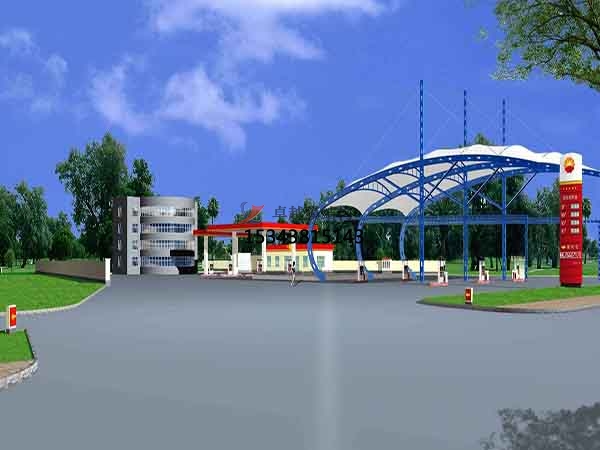 3.造型優(yōu)美,有時(shí)代氣息。加油站罩棚設(shè)計(jì)安裝的優(yōu)美造型是力平衡后自然形成的,“找形”是膜結(jié)構(gòu)采光頂建筑藝術(shù)美的重要設(shè)計(jì)內(nèi)容,是由建筑師和結(jié)構(gòu)工程師共同完成的,破了傳統(tǒng)的“先建筑,后結(jié)構(gòu)”的做法。膜結(jié)構(gòu)采光頂?shù)慕Y(jié)構(gòu)與造型、與藝術(shù)得到了結(jié)合和統(tǒng)一,因此又被稱為藝術(shù)采光頂或藝術(shù)外維護(hù)結(jié)構(gòu)。