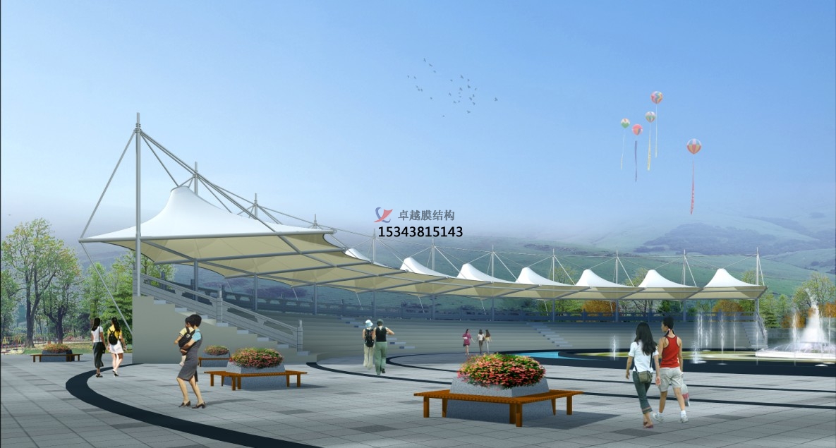 索膜結(jié)構(gòu)看臺景觀應(yīng)用場景:其應(yīng)用場景廣泛,可在‌教育領(lǐng)域‌、‌公共空間‌、‌商業(yè)與文旅‌等場景使用。在教育領(lǐng)域內(nèi),學(xué)校操場看臺提供遮陽避雨功能,適用于運動會、升旗儀式等集體活動,其開放結(jié)構(gòu)增強空間互動性,為師生提供舒適的觀看空間,也為校園增添了現(xiàn)代化的景觀元素;在公共空間,城市公園、廣場,作為休憩亭或藝術(shù)裝置,提升景觀趣味性與實用性,由于其大跨度覆蓋看臺及賽場,無立柱設(shè)計保障視野開闊,輕量化結(jié)構(gòu)提升抗震性等特性,尤其適合在體育場館應(yīng)用;在商業(yè)與文旅中,商業(yè)街區(qū)臨時展區(qū)、景區(qū)廊亭等,通過膜結(jié)構(gòu)打造標(biāo)志性視覺焦點,吸引人流并承載多功能需求,同時與自然景觀相融合,成為景區(qū)的一道亮麗風(fēng)景線。
