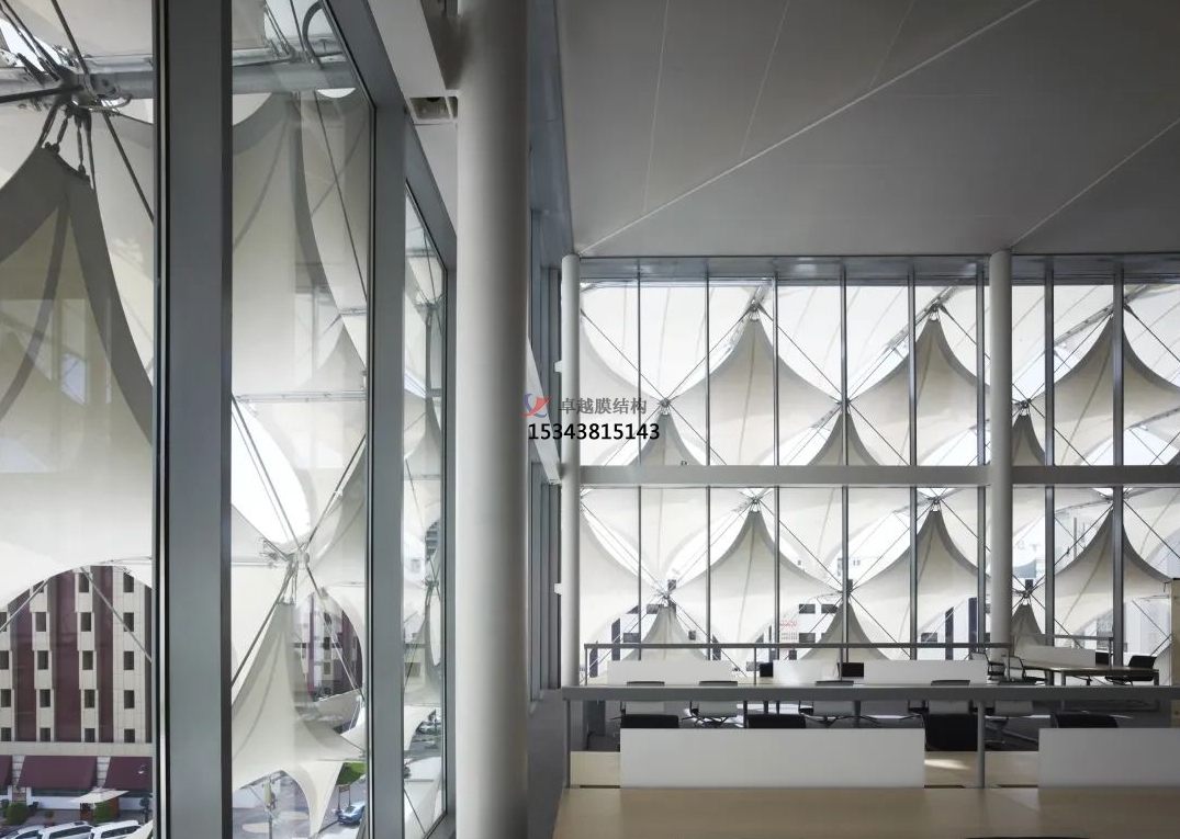 采光良好:通過(guò)選擇合適的膜材料和設(shè)計(jì)合理的結(jié)構(gòu)形式,圖書(shū)館膜結(jié)構(gòu)頂棚可以實(shí)現(xiàn)良好的采光效果。這不僅可以節(jié)省能源,還可以提高圖書(shū)館內(nèi)部的光線質(zhì)量,為讀者創(chuàng)造更好的閱讀環(huán)境。
