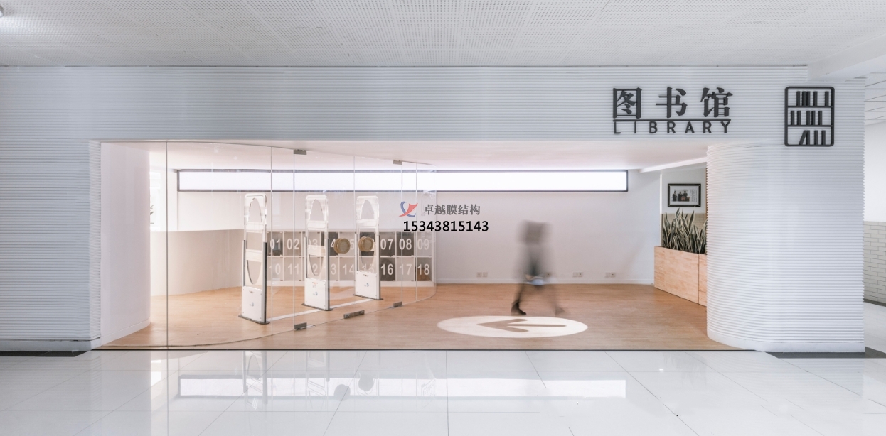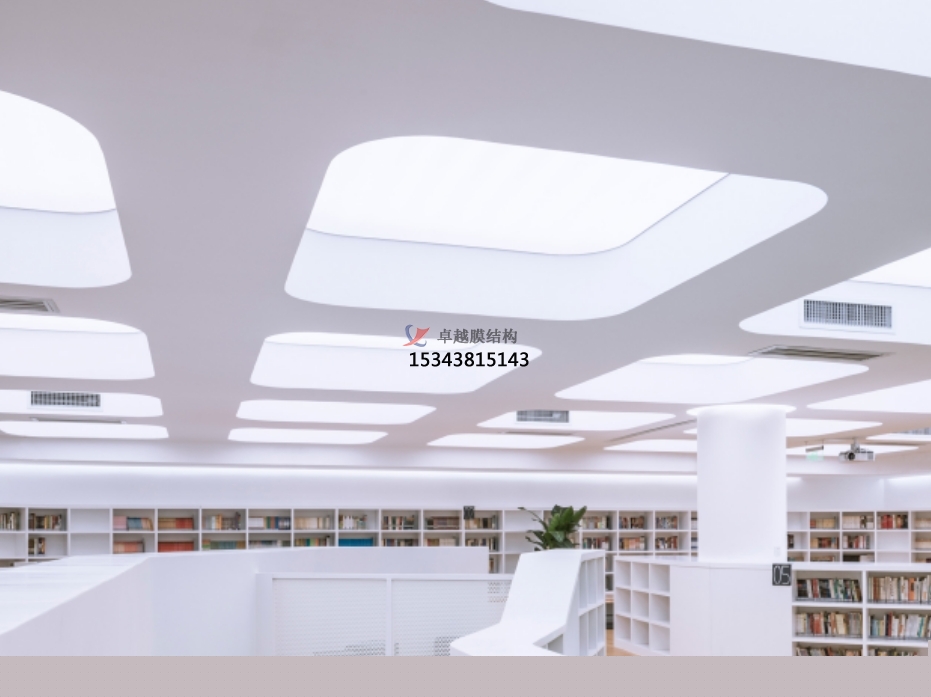 膜結(jié)構(gòu)頂棚可以有效地遮擋陽(yáng)光和雨水,為圖書(shū)館內(nèi)部提供一個(gè)舒適的環(huán)境。同時(shí),膜材料的透光性也可以保證室內(nèi)有足夠的自然光線。