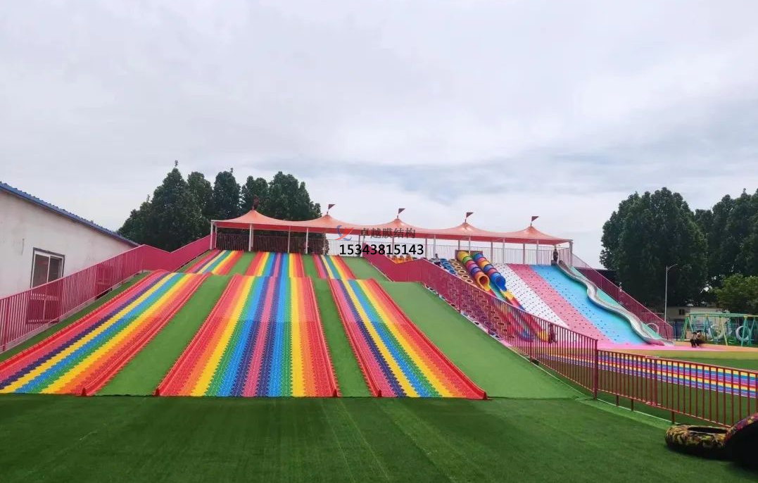 長(zhǎng)治彩虹滑道游樂設(shè)備紅色遮陽(yáng)棚結(jié)構(gòu)設(shè)計(jì)生產(chǎn)