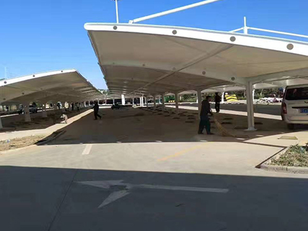 三,張拉式膜結(jié)構(gòu)停車棚的施工周期短,這也就大大節(jié)約了工程成本,我們可以按自己的想象來決定車棚更優(yōu)化的造型,也可以根據(jù)自己的預(yù)算合理選擇材料,真正做到物美價(jià)廉。