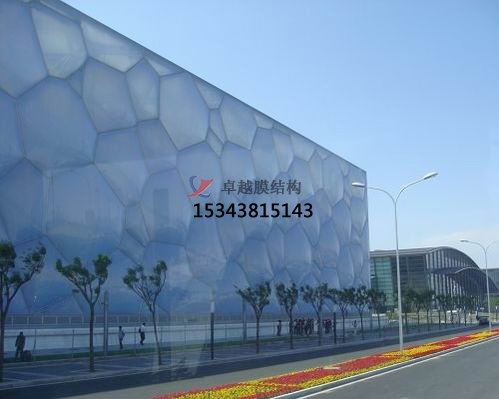 雙層的ETFE充氣膜結(jié)構(gòu),每一塊像一個(gè)“水泡泡“,氣枕通過控制充氣量的多少,對遮光度和透光性進(jìn)行調(diào)節(jié),有效地利用自然光,節(jié)省能源,具有良好的保溫隔熱、消除回聲,提供溫馨、安逸的環(huán)境,ETFE不僅具有優(yōu)良的抗沖擊性能、電性能、熱穩(wěn)定性和耐化學(xué)腐蝕性,而且機(jī)械強(qiáng)度高,加工性能好。使用20年以上。