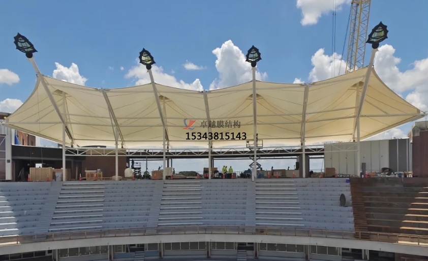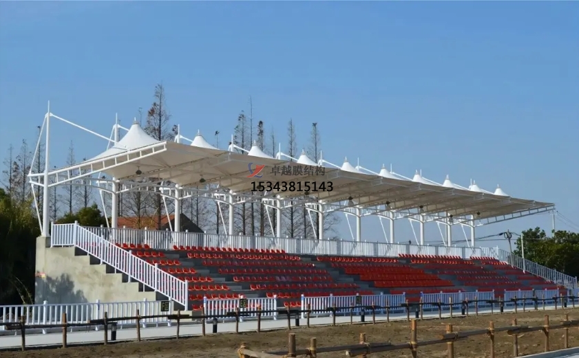 • 遮陽擋雨:膜結(jié)構(gòu)罩棚能夠有效地遮擋陽光和雨水,為觀眾提供一個干燥、舒適的觀賽環(huán)境。特別是在夏季高溫或雨季時,罩棚的作用更加顯著。