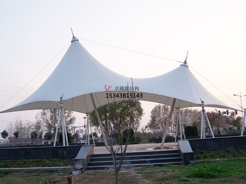 膜結(jié)構(gòu)可實現(xiàn)大跨度 ,膜材較薄 ,可任意彎曲形成曲面 。 這就給了設(shè)計師廣闊的空間來發(fā)揮他們的想象力,打破傳統(tǒng)建筑純直線的桎梏 ,使得他們能夠更加隨心所欲地表達 自己的想法。膜結(jié)構(gòu)的建筑因此具有外形自由而流暢 ,以曲面為主,色彩斑斕,造型變化豐富 ,充滿結(jié)構(gòu)之美等特點 ,其展示語言和展示手法異常豐富 ,充滿創(chuàng)造力和藝術(shù)性 。這就使得膜結(jié)構(gòu)在景觀領(lǐng)域的應(yīng)用范圍更加廣闊 。膜結(jié)構(gòu)不僅可以做供 小區(qū)居民遮風避雨 、休憩活動的小品 ,滿足人們戶外活動的需求 ,而且當它與城市風景 、園林風景等不同類型的景觀結(jié)合時 ,能獲得不同的景觀效果 。 特別的是 ,它的造型可變而隨機,可利用在地形復雜的山地公園或街道建造一些步行的廊道和休憩涼亭。 或是應(yīng)用于密閉性可變的場所 ,例如停車場 、游泳池 、步行街等 ,可以根據(jù)天氣或需求的變化而改變其閉合狀態(tài) ,例如由全封閉改為半封閉等 。