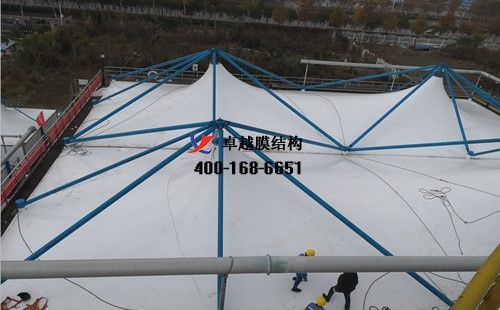 污水池反吊膜工程項目,11月10日我們卓越膜結(jié)構(gòu)公司人員開始到現(xiàn)場施工。2018年11月20日竣工。