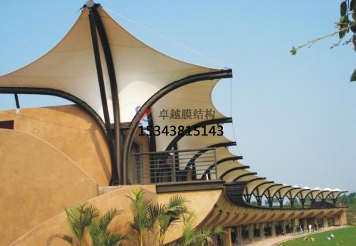膜結(jié)構(gòu)景觀是建筑結(jié)構(gòu)中更新發(fā)展起來(lái)的一種形式,它以性能優(yōu)良的織物為材料,或是向膜內(nèi)充氣,由空氣壓力支撐膜面,或是利用柔性鋼索或剛性支撐結(jié)構(gòu)將面繃緊,從而形成具有一定剛度、能夠覆蓋大跨度空間的結(jié)構(gòu)體系。自從上世紀(jì)七十年代以來(lái),膜結(jié)構(gòu)景觀在國(guó)外已逐漸應(yīng)用于體育建筑、商場(chǎng)、展覽中心、交通服務(wù)設(shè)施等大跨度建筑中。膜結(jié)構(gòu)景觀已成為結(jié)構(gòu)設(shè)計(jì)選型中的一個(gè)主要方案。