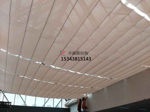 白天,陽光透過膜面使建筑物內(nèi)充滿夜自然漫射光。夜晚,室內(nèi)燈光透過膜面給空增添了夢幻般的夜景。當(dāng)膜結(jié)構(gòu)用于體育館、娛樂設(shè)施時,可以實現(xiàn)全天內(nèi)的舒適相結(jié)合的理想的商業(yè)空間。