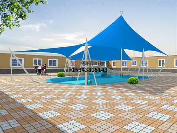 索膜結(jié)構(gòu)景觀棚的特點:索膜結(jié)構(gòu)景觀棚具有造型美觀獨特、輕質(zhì)高強、環(huán)保節(jié)能和自潔性強等特點。索膜結(jié)構(gòu)可以通過調(diào)整張拉力和支撐點的位置,創(chuàng)造出各種獨特的形態(tài),如波浪形、穹頂形、風(fēng)帆形等,甚至可以設(shè)計成抽象的藝術(shù)圖案,具有強烈的雕塑感和現(xiàn)代藝術(shù)氣息,能夠為環(huán)境增添獨特的景觀效果。膜材一般采用高強度的纖維織物,如玻璃纖維、聚酯纖維等,重量輕但強度高,其自重比傳統(tǒng)建筑結(jié)構(gòu)小得多,同時卻能承受較大的荷載,在大跨度空間的應(yīng)用上具有優(yōu)勢,可有效降低基礎(chǔ)和支撐結(jié)構(gòu)的荷載。膜材具備良好的耐候性和抗老化性能,使用壽命較長,一般可達(dá)十年以上,減少了頻繁更換帶來的資源浪費和環(huán)境污染。而且部分膜材可回收再利用,符合當(dāng)今社會提倡的綠色發(fā)展理念。一些高品質(zhì)的膜材表面具有防護(hù)涂層,能夠使膜面具有自潔功能,雨水沖刷即可帶走表面的灰塵和污垢,保持膜面的清潔,降低了維護(hù)成本。