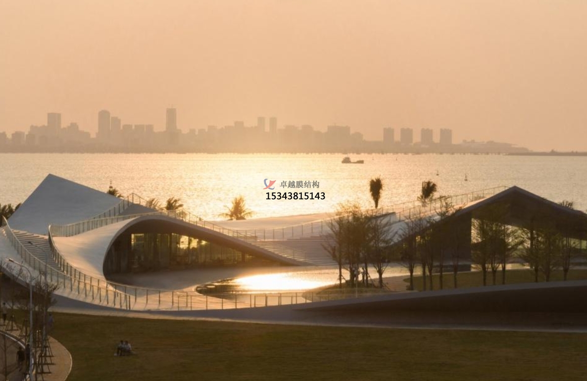 海邊的景觀膜結(jié)構(gòu)最顯著的特點是其與海洋環(huán)境的和諧共生。這些結(jié)構(gòu)往往采用流線型設計,模仿海浪、貝殼等自然元素,與周圍的海濱風光相得益彰。膜材料的選擇也注重透光性和耐候性,既保證了室內(nèi)光線的充足,又能抵御海邊惡劣的天氣條件,如強風、高鹽度等。