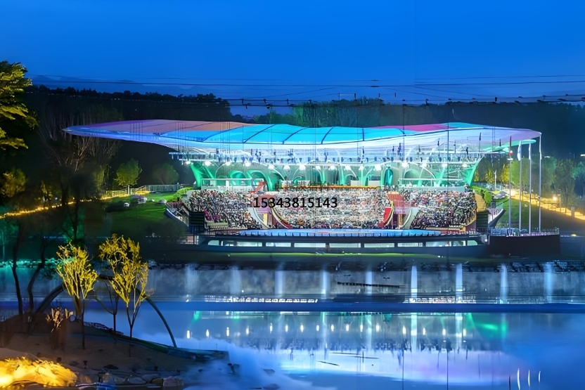 燈光是舞臺(tái)表演的靈魂之一,膜結(jié)構(gòu)舞臺(tái)的設(shè)計(jì)需要與照明系統(tǒng)緊密配合。膜材的透光性為燈光設(shè)計(jì)提供了更多可能性,可以利用燈光從內(nèi)部或外部照射膜面,創(chuàng)造出豐富多樣的光影效果。通過巧妙的燈光布局,能夠突出舞臺(tái)的造型特點(diǎn),增強(qiáng)演出的層次感與立體感,將觀眾帶入特定的情境之中。比如,在一場(chǎng)懸疑劇中,利用燈光在膜結(jié)構(gòu)舞臺(tái)上投射出神秘的陰影,營造緊張氛圍。