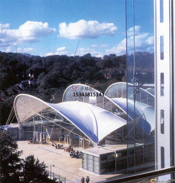 2. 藝術(shù)性:除了一般雨蓬不可比擬的實(shí)用、耐用、遮風(fēng)擋雨的功能外,膜結(jié)構(gòu)雨蓬更是一座雕塑,一件藝術(shù)品,給人美的視覺(jué)享受。其柔美,其曲線,其剛?cè)岵?jì),其豐富造型,其潔白無(wú)瑕,讓人眼前一亮,回味悠長(zhǎng)。