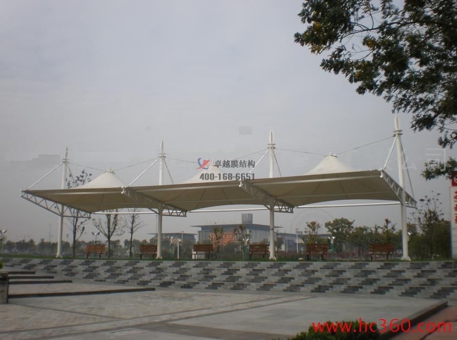 膜結(jié)構(gòu)建筑具有耐紫外線、耐腐蝕、柔韌性好、材料輕、造型美觀、環(huán)保節(jié)能、機(jī)械性能好、耐火性強(qiáng)、自潔能力強(qiáng)、安裝拆卸方便等優(yōu)點(diǎn)??梢哉f(shuō),它是一種非常優(yōu)秀的新型建筑材料,廣泛應(yīng)用于各種遮陽(yáng)、商業(yè)吊頂、景觀棚等,使用壽命可達(dá)15年以上,可以說(shuō)作為一種材料具有固有的優(yōu)勢(shì)。