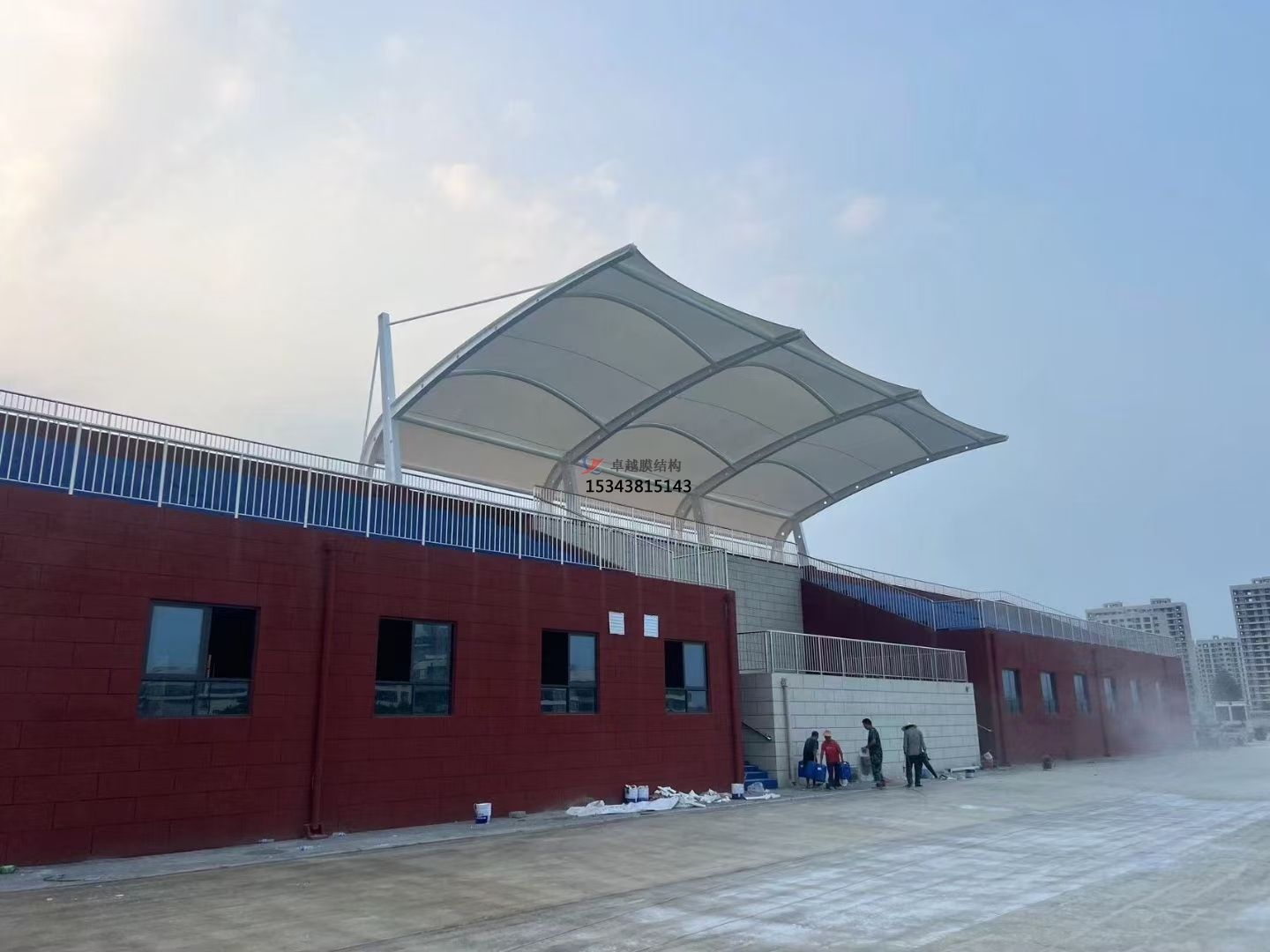 膜結(jié)構(gòu)體育看臺空間跨度大,張拉膜造型能擴大視覺空間,但其結(jié)構(gòu)輕巧,自重輕,具有較高的安全性;此外,膜材較好的柔光性能,擁有高透光及折射性質(zhì),營造自然明亮的感覺。張拉式膜結(jié)構(gòu)看臺后方藏設(shè)燈源,晚上能產(chǎn)生光彩晶瑩的感覺,同時可做間接照明。有宛如玻璃墻的效果。花色眾多好保養(yǎng),它耐酸堿的侵蝕,下雨雨水洗滌擦干即可。唯一需注意的是,膜材的材質(zhì)性能不同,功能也相對不同。