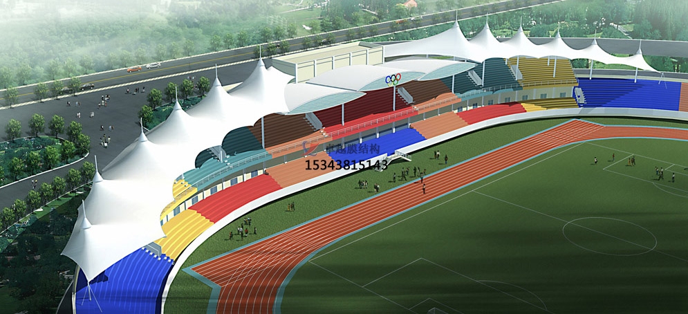 張拉膜看臺(tái)主要用于各類(lèi)地方體育場(chǎng)主席臺(tái)雨棚,各類(lèi)學(xué)校體育場(chǎng)看臺(tái)雨棚遮蓋,我公司是國(guó)內(nèi)較早從事大懸挑張拉膜結(jié)構(gòu)看臺(tái)設(shè)計(jì)施工的專(zhuān)業(yè)廠(chǎng)家,下面介紹一下我們?cè)谟乐菔兄苓吙h市完工的一些張拉膜看臺(tái)設(shè)計(jì)施工案例,我公司先后在郴州市周邊承接了永州職業(yè)技術(shù)學(xué)院看臺(tái)雨棚、郴州市工業(yè)交通學(xué)??磁_(tái)罩棚、湖南郴州明星學(xué)校張拉膜看臺(tái)遮陽(yáng)棚張拉膜看臺(tái)遮陽(yáng)棚等設(shè)計(jì)施工項(xiàng)目,簡(jiǎn)介如下: