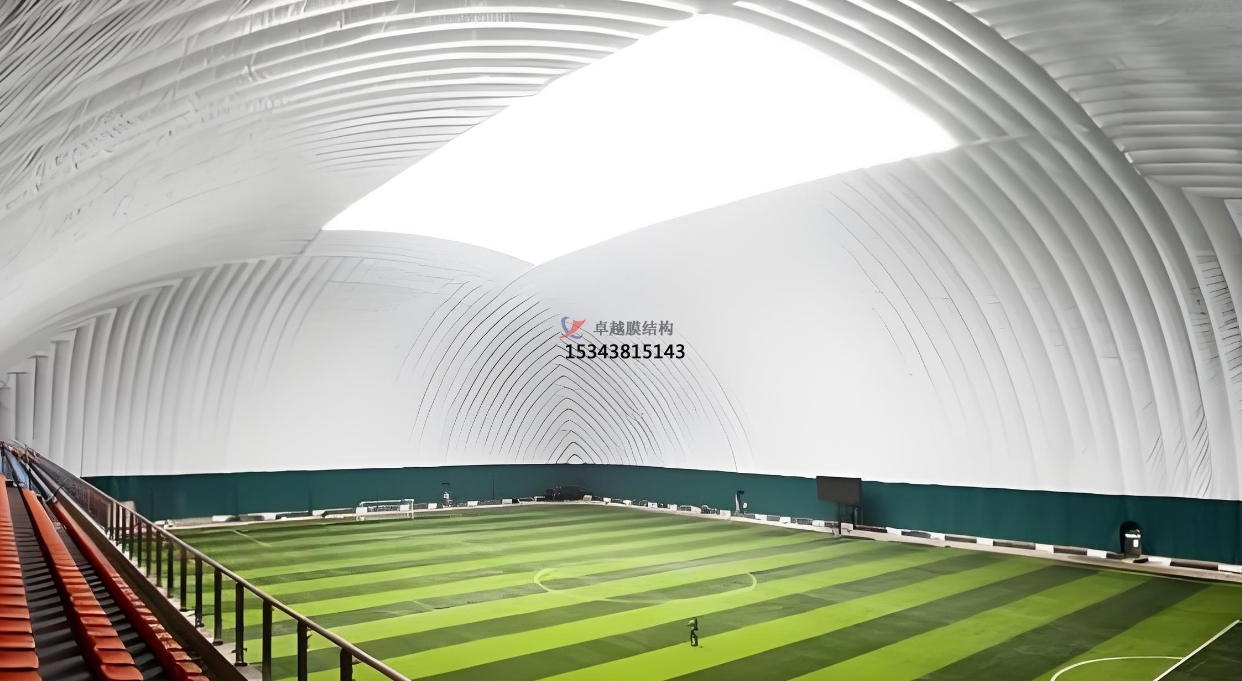 膜結(jié)構(gòu)的核心材料 —— 膜材,具有諸多優(yōu)異的性能。首先是其出色的透光性,高質(zhì)量的膜材能夠讓充足的自然光均勻地灑在綠茵場(chǎng)上,滿(mǎn)足草坪的光合作用需求,保證草坪的健康生長(zhǎng),為球員提供良好的比賽場(chǎng)地條件。同時(shí),膜材的透光性還能為觀(guān)眾營(yíng)造出舒適的觀(guān)賽環(huán)境,減少人工照明的使用,達(dá)到節(jié)能環(huán)保的效果。