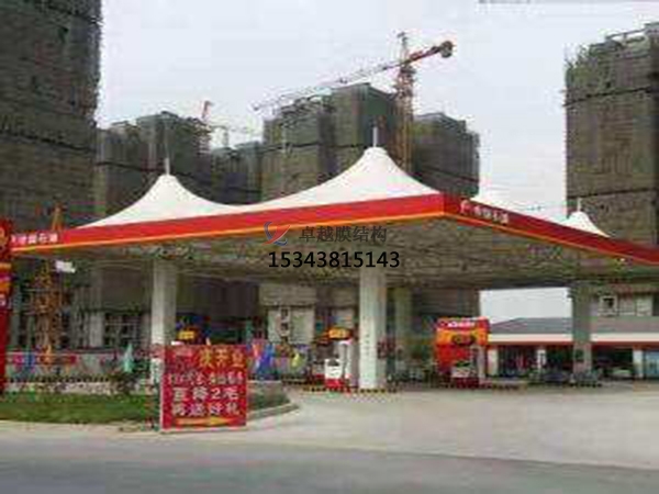 2、加油站張拉膜使用的膜材主要有PVC,PVDF,PTFE等,膜材的正確選定考慮其建筑的規(guī)模大小、用途、形式,使用年限及預(yù)算等綜合因素后決定。