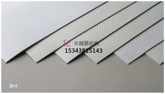 張拉膜結(jié)構(gòu)所用的膜材是一種新興的建筑材料,已被公認(rèn)為是繼磚、石、混凝土、鋼和木材之后的"六種建筑材料。張拉膜結(jié)構(gòu)所用的膜材是指以聚酯纖維或玻璃纖維為基布并附有不同的表面涂層,可承受一定載荷的建筑紡織品。膜材由基布和涂層兩部分組成?;贾饕捎镁埘ダw維或玻璃纖維材料等;涂層材料主要采用聚氯乙烯和聚四氟乙烯等。