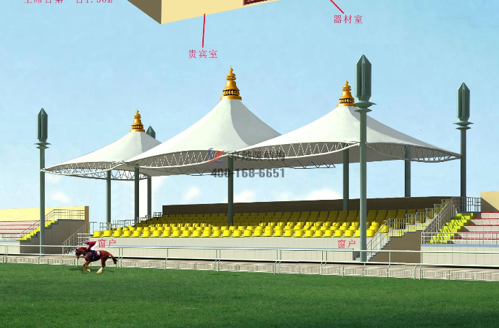 膜結(jié)構(gòu)看臺(tái)是膜結(jié)構(gòu)材料近年來(lái)應(yīng)用的一個(gè)新領(lǐng)域,膜結(jié)構(gòu)建筑能很好的籠罩全部的看臺(tái),是有: