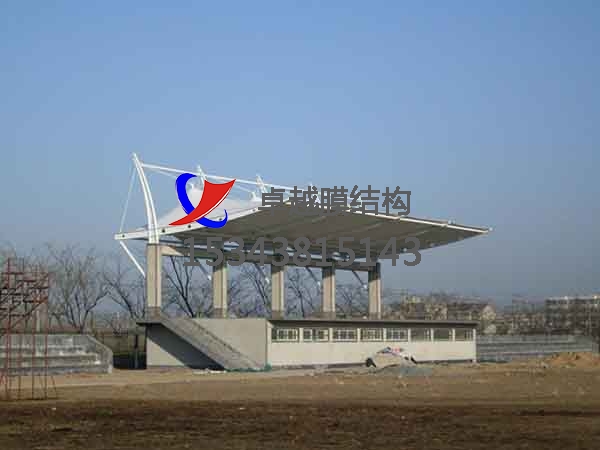 張拉膜看臺主要用于各類地方體育場主席臺雨棚,各類學校體育場看臺雨棚遮蓋,我公司是國內較早從事大懸挑張拉膜結構看臺設計施工的專業(yè)廠家,下面介紹一下我們在揚州市周邊縣市完工的一些張拉膜看臺設計施工案例,我公司先后在揚州周邊承接了揚州市職業(yè)大學張拉膜看臺雨棚、江海職業(yè)技術學院張拉膜看臺罩棚、揚州環(huán)境資源職業(yè)技術學院張拉膜看臺遮陽棚等設計施工項目,簡介如下: