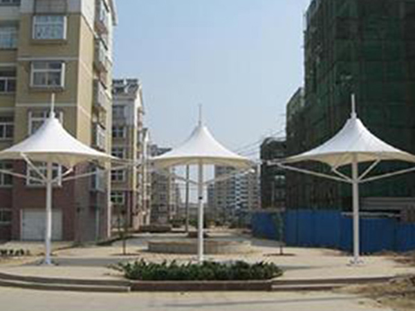 膜結(jié)構(gòu)車棚造型簡潔大方,外觀雅致飄逸,結(jié)構(gòu)輕盈,經(jīng)久自潔、節(jié)能減耗,經(jīng)濟適用,維修簡單。除了一般雨蓬不可比擬的實用、耐用、遮風擋雨的功能外,膜結(jié)構(gòu)雨蓬更是一座雕塑,一件藝術品,給人美的視覺享受。其柔美,其曲線,其剛?cè)岵湄S富造型,其潔白無瑕,讓人眼前一亮,回味悠長。