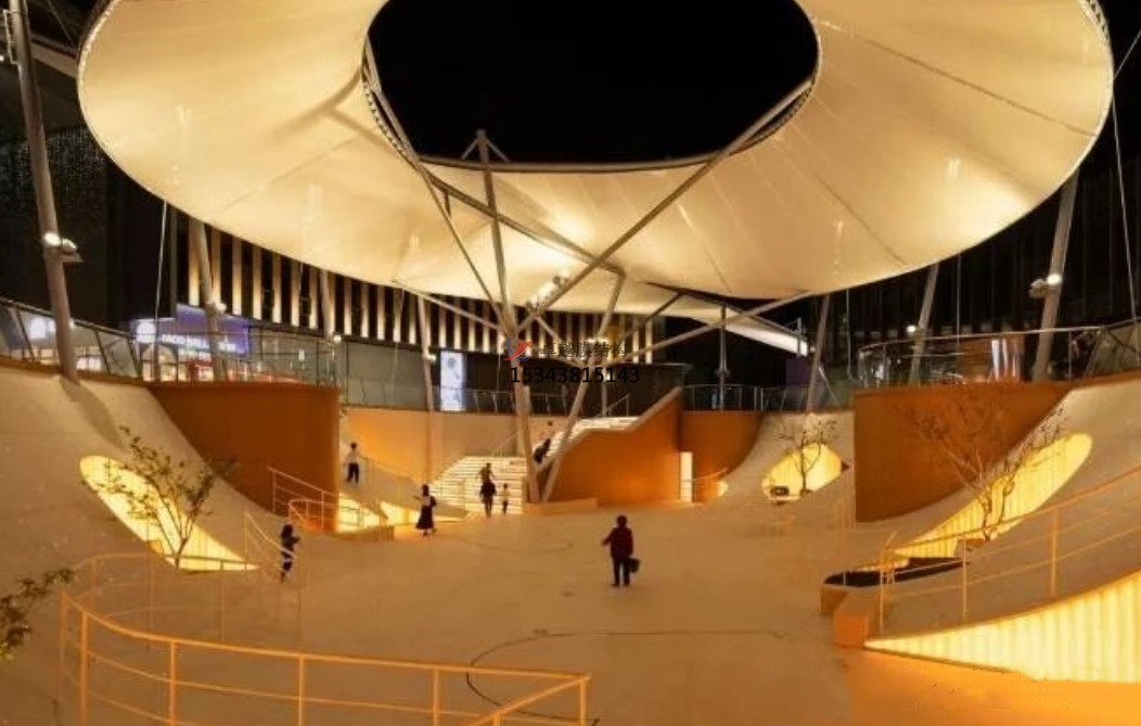 但不管怎么有格調(diào)的下沉式商業(yè)。廣場(chǎng),它也是一個(gè)半露天的公共空間,如果缺乏遮陽(yáng)避雨設(shè)施,無(wú)法提供更加舒適的休閑環(huán)境,因此,在下沉廣場(chǎng)上方增設(shè)頂蓋是非常必要的,而且一個(gè)兼具美觀、時(shí)尚、實(shí)用的頂蓋也是建筑的加分項(xiàng)。