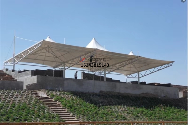 膜結(jié)構(gòu)是一種建筑與結(jié)構(gòu)完美結(jié)合的結(jié)構(gòu)體系,采用高強(qiáng)度柔性薄膜材料與輔助結(jié)構(gòu)通過一定方式使其內(nèi)部產(chǎn)生一定的預(yù)張應(yīng)力,并形成應(yīng)力控制下的某種空間形狀。這種結(jié)構(gòu)具有造型自由輕巧、阻燃、制作簡易、安裝快捷、節(jié)能、易于使用安全等優(yōu)點(diǎn),適用于各種各樣的場合.