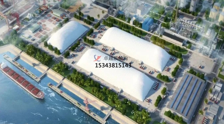 目前我國年吞吐量在1000萬噸以上的沿海港口和200萬噸以上的內(nèi)河港口占全國港口的1/3。而港口發(fā)展中所用到的煤炭、物料、煤矸石、煤堆、水泥白灰等生產(chǎn)原料造成的揚(yáng)塵污染,給當(dāng)?shù)厣鷳B(tài)及居住環(huán)境造成了嚴(yán)重破壞。而全封閉氣膜倉儲結(jié)構(gòu)在港口碼頭堆場中的應(yīng)用,不但能有效幫助港口企業(yè)實(shí)現(xiàn)環(huán)保與經(jīng)濟(jì)并存的雙贏局面,還將促成我國港口形成綠色生態(tài)新發(fā)展格局。