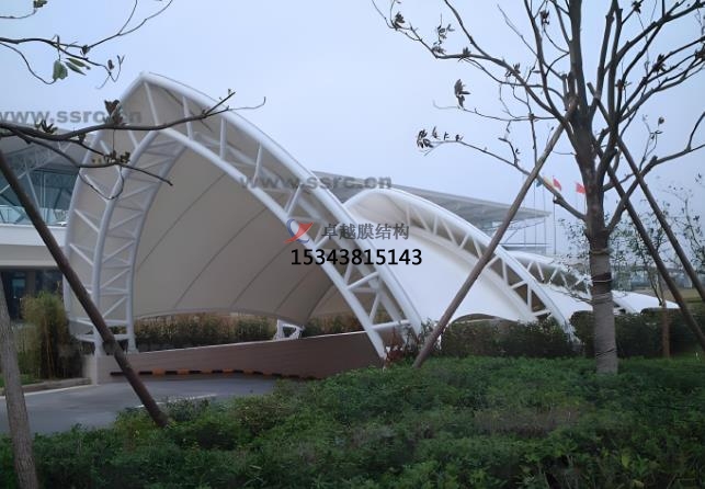 膜結(jié)構(gòu)出入口優(yōu)勢(shì)總結(jié):膜結(jié)構(gòu)的外觀和造型可以創(chuàng)造出各種獨(dú)特的造型,如弧形、波浪形、拱形等,使出入口具有較高的觀賞性和藝術(shù)感。膜材料通常具有較好的透光性,可以增加出入口的采光,使內(nèi)部空間更加明亮。膜結(jié)構(gòu)具備足夠的穩(wěn)定性和耐久性,以承受風(fēng)、雨、雪等自然環(huán)境的影響。由于出入口需要保證人員和車輛的安全通行,所以膜結(jié)構(gòu)具備防滑、防碰撞等安全設(shè)計(jì)??紤]到人們的使用需求,膜結(jié)構(gòu)通常具有人性化設(shè)計(jì),出入口的寬度、高度、坡度等符合人體工程學(xué)原理,方便人們進(jìn)出。通過適當(dāng)?shù)恼彰髟O(shè)計(jì),可以使膜結(jié)構(gòu)出入口在夜晚呈現(xiàn)出獨(dú)特的視覺效果,增加夜間的辨識(shí)度和美感。膜結(jié)構(gòu)出入口的設(shè)計(jì)多樣化,可以與周邊建筑和環(huán)境相協(xié)調(diào),融入整體景觀。膜結(jié)構(gòu)出入口的設(shè)計(jì)還可以結(jié)合具體的文化元素和現(xiàn)代感,如“城市之窗”造型、折紙?jiān)煨?、陶器造型等,使出入口不僅實(shí)用,還能成為城市景觀的一部分。