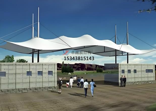 膜結(jié)構(gòu)出入口是一種以高強(qiáng)度膜材料與支撐結(jié)構(gòu)(鋼索、鋼架等)結(jié)合的建筑形式,具有輕盈、美觀、耐用等特點(diǎn),廣泛應(yīng)用于各種場(chǎng)所的建筑形式,主要用于提供遮陽、遮雨的功能,同時(shí)具有較高的觀賞性和藝術(shù)感。