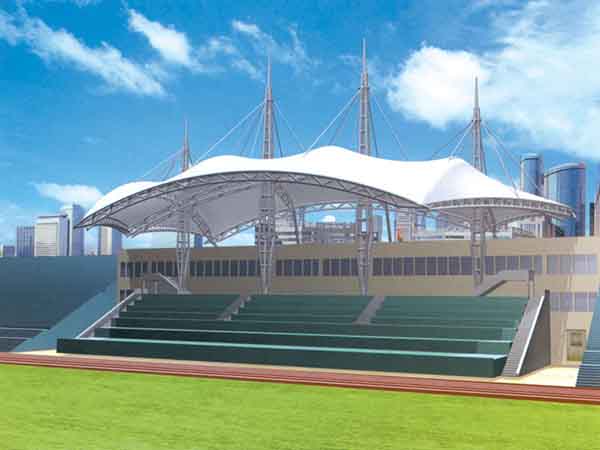 張拉膜看臺(tái)主要用于各類(lèi)地方體育場(chǎng)主席臺(tái)雨棚,各類(lèi)學(xué)校體育場(chǎng)看臺(tái)雨棚遮蓋,我公司是國(guó)內(nèi)較早從事大懸挑張拉膜結(jié)構(gòu)看臺(tái)設(shè)計(jì)施工的專(zhuān)業(yè)廠家,下面介紹一下我們?cè)谂_(tái)州市周邊縣市完工的一些張拉膜看臺(tái)設(shè)計(jì)施工案例,我公司先后在臺(tái)州周邊承接了臺(tái)州學(xué)院張拉膜看臺(tái)雨棚、臺(tái)州職業(yè)技術(shù)學(xué)院張拉膜看臺(tái)罩棚、臺(tái)州科技職業(yè)學(xué)院張拉膜看臺(tái)遮陽(yáng)棚等設(shè)計(jì)施工項(xiàng)目,簡(jiǎn)介如下:
