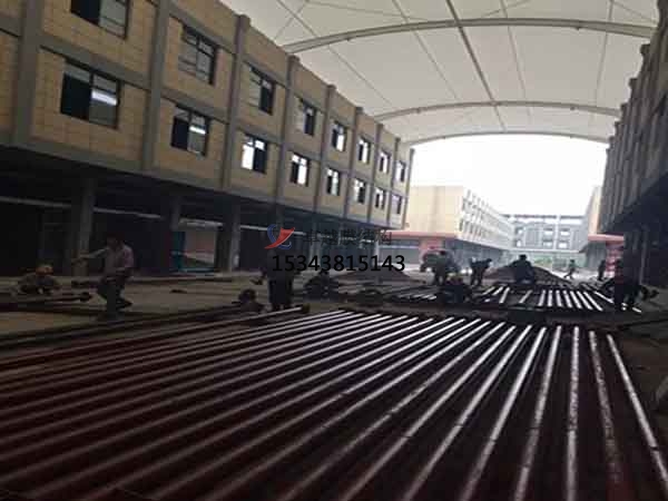 2、膜結構的膜材制作是在專用膜材料加工廠熱合加工而成,通過現(xiàn)場組裝預制構件(膜片、索等)而實現(xiàn)的。