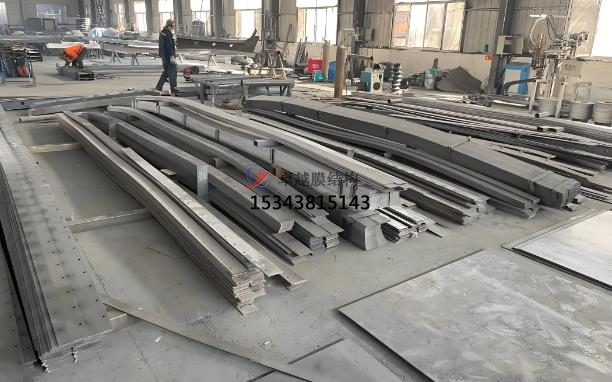 膜結(jié)構(gòu)生產(chǎn)的材料和加工:膜結(jié)構(gòu)的主要材料包括膜材和鋼結(jié)構(gòu)。根據(jù)設(shè)計(jì)要求,采購合適的膜材。常見的膜材有聚四氟乙烯(PTFE)膜材、聚氯乙烯(PVC)膜材等,采購時(shí)需注意膜材的質(zhì)量、性能和規(guī)格是否符合要求。我們的膜材通常采用進(jìn)口材料,具有高標(biāo)準(zhǔn)的阻燃、自潔和耐久性能。鋼結(jié)構(gòu)部分則根據(jù)設(shè)計(jì)圖紙進(jìn)行切割、焊接和打磨,確保其尺寸精確和表面光滑。我們會(huì)根據(jù)支撐結(jié)構(gòu)的設(shè)計(jì)要求,采購鋼材、鋁合金等材料,并進(jìn)行檢驗(yàn)和預(yù)處理,如除銹、防腐處理等。膜材的加工包括裁剪和焊接,使用先進(jìn)的裁剪及焊接生產(chǎn)線進(jìn)行,確保膜材的拼接精確和牢固。鋼結(jié)構(gòu)部分則通過CAD編輯到等離子切割,割出形狀后,用扁鐵包邊、打磨和刷油漆,確保其質(zhì)量和外觀。膜結(jié)構(gòu)的加工制作,膜結(jié)構(gòu)的展開形狀和尺寸,結(jié)合膜材的幅寬和特性,進(jìn)行裁剪設(shè)計(jì),確定每一塊膜片的形狀和尺寸,同時(shí)考慮到拼接縫的位置和方式,以減少材料浪費(fèi)和提高結(jié)構(gòu)性能。裁剪會(huì)使用到專業(yè)的裁剪設(shè)備,如數(shù)控裁剪機(jī),按照裁剪設(shè)計(jì)的圖紙對(duì)膜材進(jìn)行精確裁剪。裁剪過程中要注意控制裁剪精度,避免出現(xiàn)尺寸偏差和邊緣損傷。拼接縫合,將裁剪好的膜片通過熱合、縫合等方式進(jìn)行拼接,形成完整的膜結(jié)構(gòu)。拼接處要保證密封性能和強(qiáng)度,通常采用專用的膜材焊接設(shè)備或縫紉機(jī)進(jìn)行加工。支撐結(jié)構(gòu)的制作,支撐結(jié)構(gòu)也叫預(yù)埋件,預(yù)埋件的制作根據(jù)膜結(jié)構(gòu)的大小和設(shè)計(jì)要求進(jìn)行,厚度和長寬由CAD編輯到等離子切割而來?;A(chǔ)施工包括放線、切割地面、挖機(jī)破碎地面、混凝土放預(yù)埋板和地面修復(fù)等步驟。安裝過程中,將膜材與鋼結(jié)構(gòu)進(jìn)行精確連接,確保膜結(jié)構(gòu)的張拉和固定,使其在實(shí)際應(yīng)用中能夠承受各種環(huán)境條件,確保膜結(jié)構(gòu)的穩(wěn)固安裝。