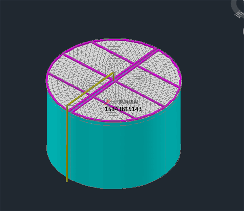 該圖為酸罐頂部膜結(jié)構(gòu)封閉設(shè)計(jì)圖紙頂視圖。