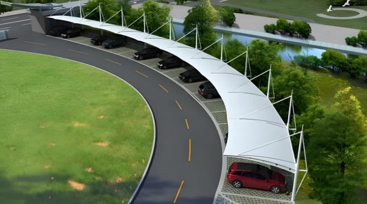 一 膜結(jié)構(gòu)雨棚特點(diǎn)和優(yōu)勢(shì)主要體現(xiàn)在造型美觀,自潔性強(qiáng),輕便耐用,施工便捷,‌環(huán)保節(jié)能。膜材具有良好的可塑性,可設(shè)計(jì)出各種獨(dú)特的造型,如曲線形、球形、錐形等,為建筑增添藝術(shù)美感。膜材料透光率可達(dá)30%,在陽光下不會(huì)變黃或霧化,可實(shí)現(xiàn)自然采光,降低白天照明能耗,同時(shí)提供柔和均勻的光線。膜材料表面防護(hù)涂層如聚氟乙烯等,有著不發(fā)粘的特性,灰塵等污染物可依靠雨水自然沖洗達(dá)到自潔效果,保持雨棚外觀整潔。膜材重量輕,高強(qiáng)度膜材與張拉技術(shù)應(yīng)用減少了雨棚整體重量,使膜結(jié)構(gòu)雨棚抵御風(fēng)雨能力強(qiáng),對(duì)支撐結(jié)構(gòu)要求較低,且高強(qiáng)度膜材配合合理的結(jié)構(gòu)設(shè)計(jì),使其能抵御多種惡劣天氣,使用年限可達(dá)25年以上,膜材強(qiáng)度是普通玻璃的250-300倍,部分采用永久性膜材的車棚可使用三、四十年。相比傳統(tǒng)建筑雨棚,我們的膜材和鋼結(jié)構(gòu)在工廠預(yù)制,縮短工期,現(xiàn)場(chǎng)安裝速度快,施工周期短,對(duì)周圍環(huán)境影響小。同等大小的建筑,采用膜結(jié)構(gòu)成本只相當(dāng)于傳統(tǒng)建筑的二分之一或更少,短期應(yīng)用的大跨度建筑時(shí)更經(jīng)濟(jì)。且膜結(jié)構(gòu)還具有良好的隔熱性能,可減少能源消耗,部分設(shè)計(jì)還可利用太陽能發(fā)電。