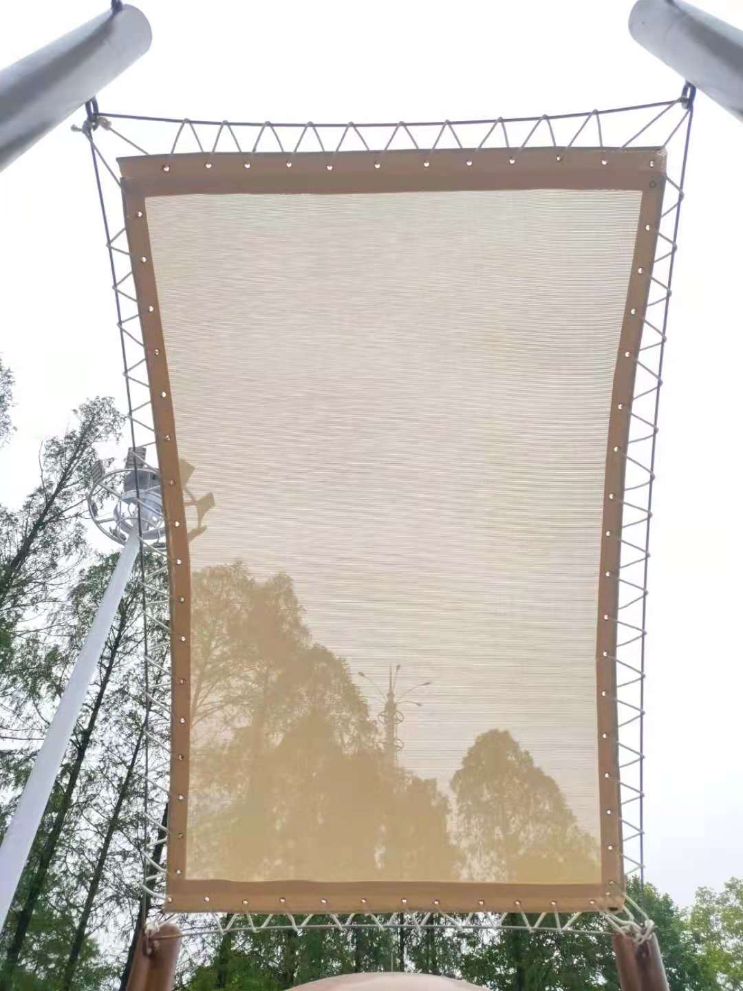 武漢瑪雅公園膜結構景觀,是我公司與游樂設備公司配套工程,材料遮陽效果好,質(zhì)量輕,采用法國進口彩色法拉利網(wǎng)格膜材,空運到我廠深加工后,現(xiàn)場安裝完成的,完工時間2021年4月7日