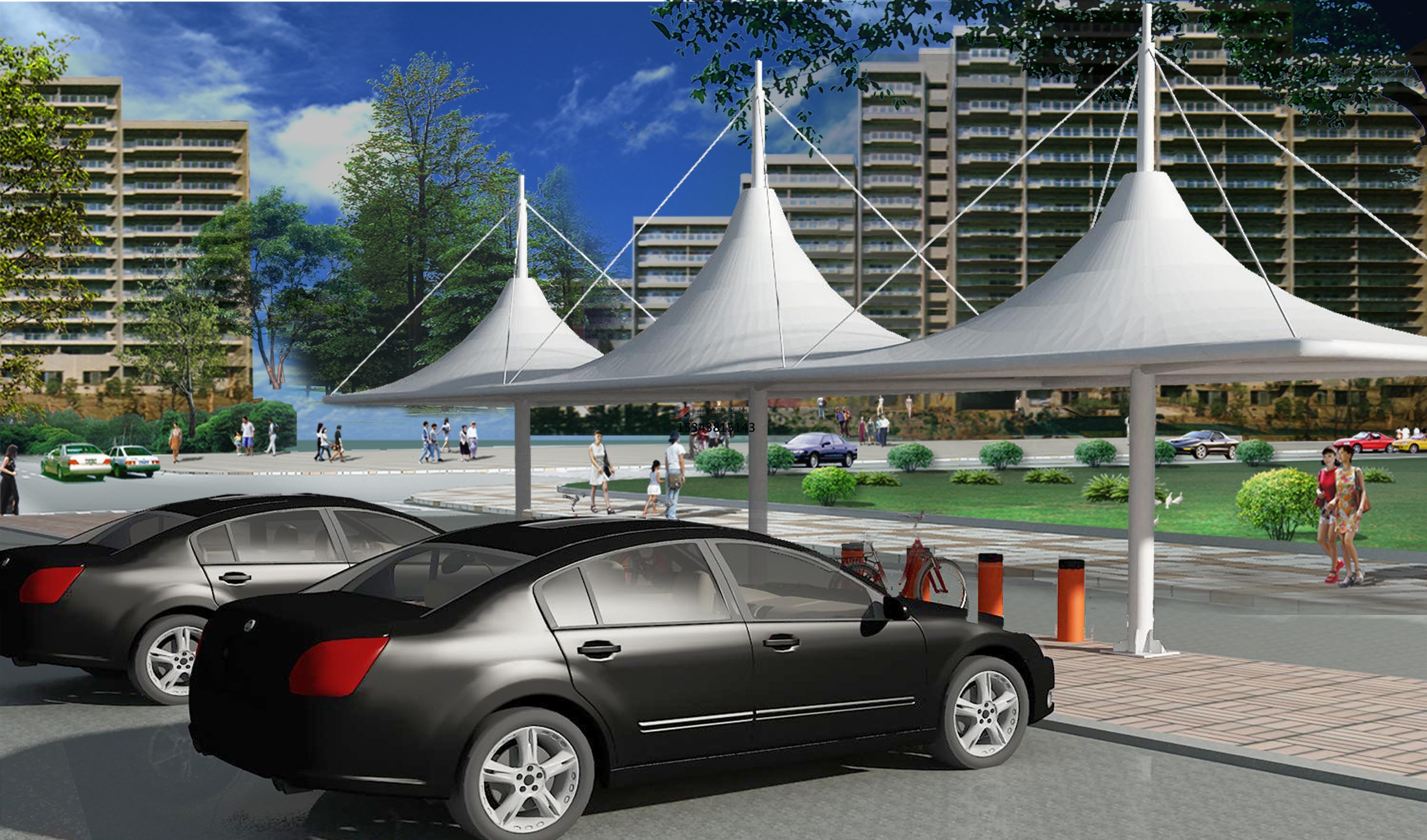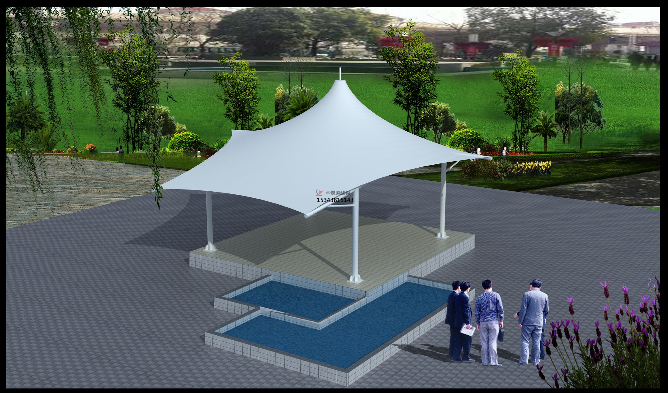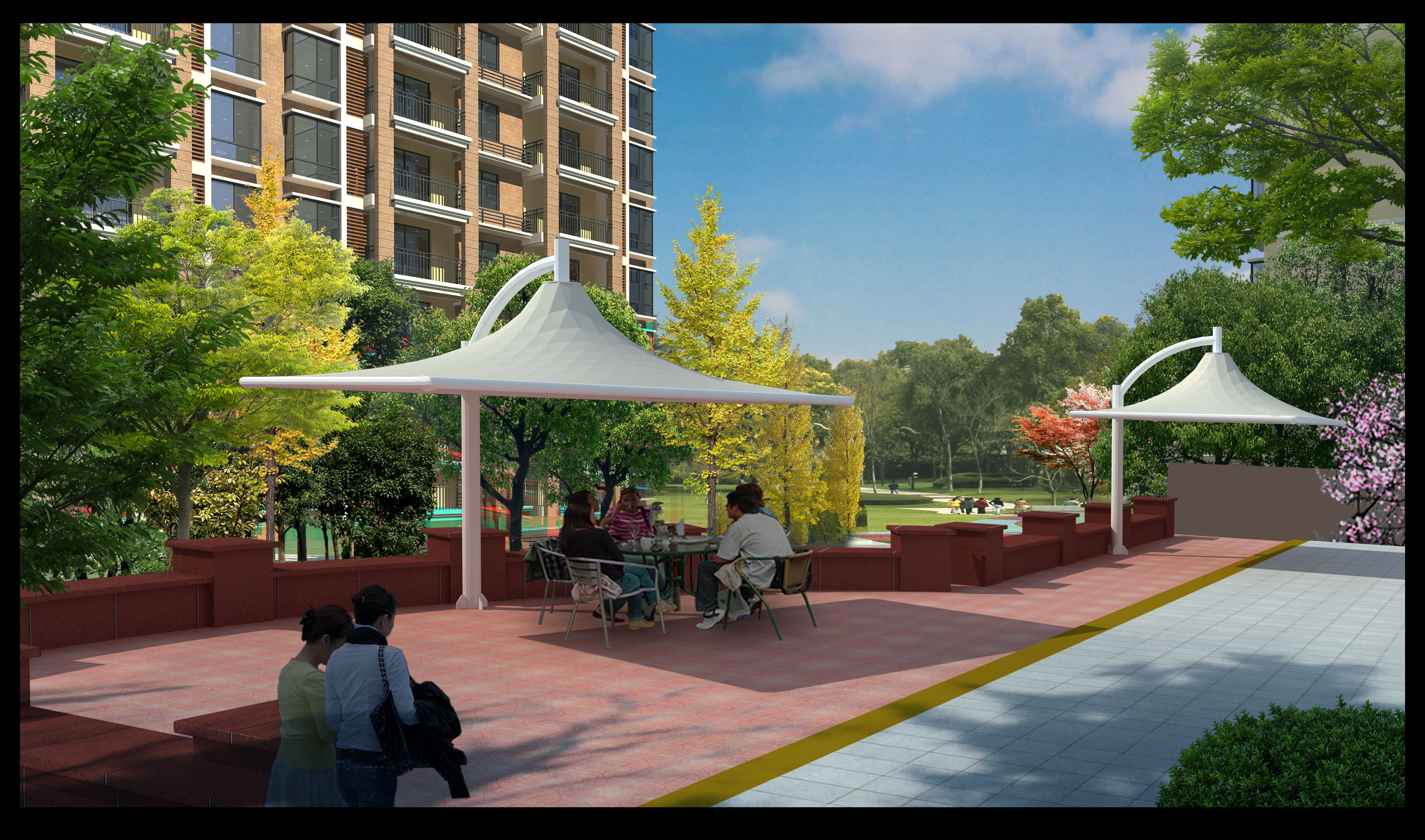 由于膜結(jié)構(gòu)景觀棚造型結(jié)構(gòu)的自身特性,其可以滿足從簡(jiǎn)單遮陽(yáng)結(jié)構(gòu)到功能復(fù)雜的大型建筑等許多不同的建筑功能要求,并形態(tài)極具表現(xiàn)力且對(duì)于有些功能要求只有它才是更為適合的。具有特定功能的建筑都可通過(guò)立意得以表達(dá),膜結(jié)構(gòu)景觀棚獨(dú)特造型體現(xiàn)了建筑自身的自然美感。