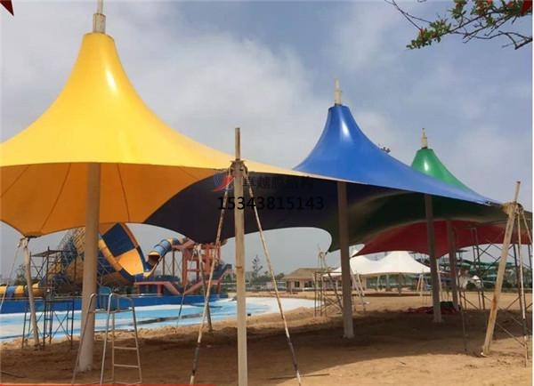 (7)適用廣。從氣候條件看,張拉膜景觀建筑適用的地域廣闊;從規(guī)模上看,可以小到單人帳篷、花園小品,大到覆蓋幾萬、幾十萬平方米的建筑。甚至有人曾設(shè)想覆蓋一個(gè)小城,實(shí)現(xiàn)人造自然。