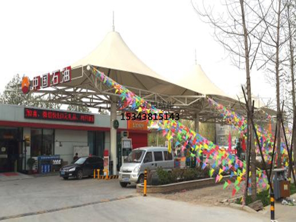 加油站罩棚設(shè)計(jì)安裝的篷布材質(zhì)是膜結(jié)構(gòu),而膜材的更大特點(diǎn)是強(qiáng)度高、耐久性好、防火難燃、自潔性好,不受紫外線影響,使用壽命長,一般15-30年。具有高透光率,透光率為13%,對(duì)熱能反射率73%,熱吸收量很少。