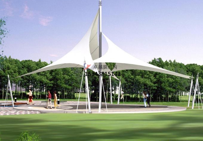節(jié)點細部設(shè)計是張拉膜景觀車棚工程設(shè)計更重要的技術(shù)環(huán)節(jié),不僅影響張拉膜景觀車棚建筑整體與局部建筑藝術(shù)性,且影響構(gòu)件制作、安裝、結(jié)構(gòu)受力安全、造價等。連接節(jié)點構(gòu)造設(shè)計 充分體現(xiàn)了張拉膜景觀車棚設(shè)計的美學(xué)、專業(yè)性、綜合性與精密技術(shù)性,是張拉膜景觀車棚設(shè)計的靈魂。張拉膜景觀車棚節(jié)點具體形式紛繁復(fù)雜,十分豐富。根據(jù)膜作用與連接關(guān)系,可分為膜 節(jié)點、膜與剛性邊界、膜與柔性邊界索;