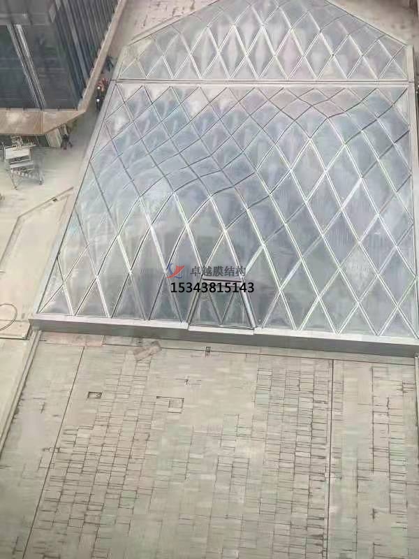 第三款膜結(jié)構(gòu)天窗可以不用拉緊,天窗除了應(yīng)急有氣體是可以起到緩沖的作用??蛻暨€能選用高透光的膜材料采光會更好一些,在緊急情況下是個應(yīng)急出口,減少了對建筑大面積的損壞。