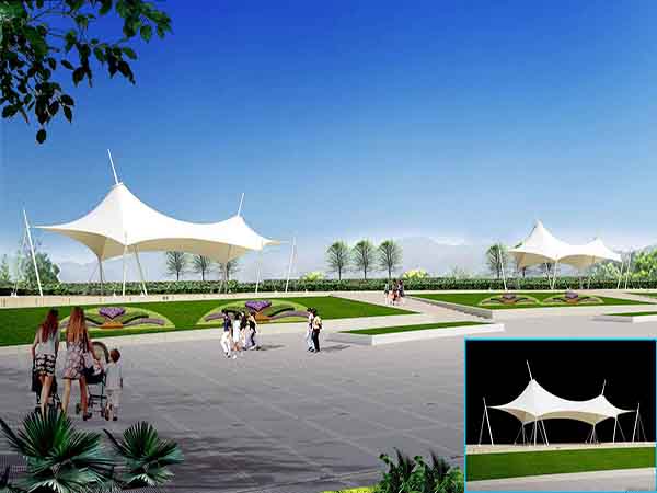 2、一個城市的中心區(qū)反映一個城市的地理風(fēng)貌和民族風(fēng)情,同時,也是一個城市文化發(fā)展程度的標(biāo)志。而景觀設(shè)計要求其具有廣泛的可讀性、雅俗共賞,既有超凡脫俗的藝術(shù)價值,又能使大眾喜聞樂見與大眾息息相通。張拉膜以其輕盈飄逸的造型、柔美并帶有力量的曲線和大跨度和大空間的鮮明個性和標(biāo)識性,應(yīng)用于城市小品設(shè)計中。