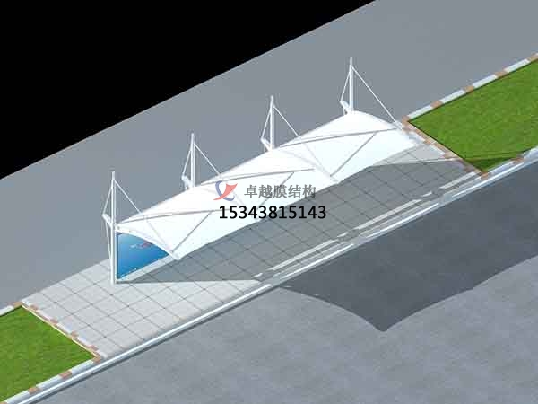 膜結(jié)構(gòu)雨棚是一種全新的建筑結(jié)構(gòu)形式,它集建筑學(xué)、結(jié)構(gòu)力學(xué)、精細(xì)化工與材料科學(xué)、計(jì)算機(jī)技術(shù)等為一體,具有很高技術(shù)含量。其曲面可以隨著建筑師的設(shè)計(jì)需要任意變化,結(jié)合整體環(huán)境,建造出標(biāo)志性的形象工程。