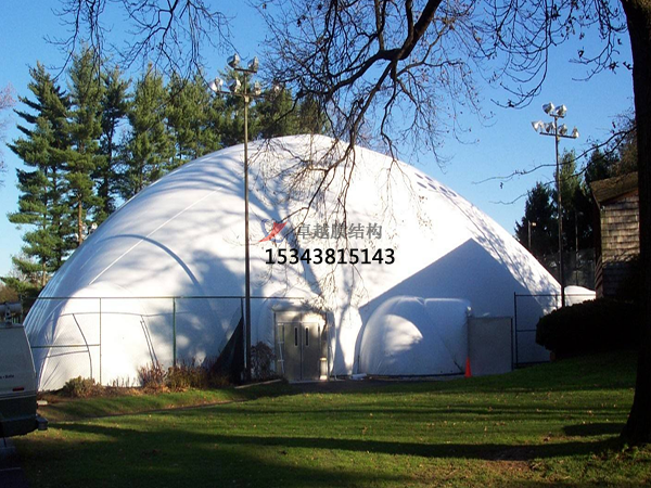 2、卓越膜結構工程公司是充氣膜結構工程設計施工、結構設計、靜動力計算分析、整體結構安裝以及使用維護于一體的綜合性工程公司。膜結構中的高強度柔韌薄膜稱膜材,它是一種耐腐蝕、耐高溫、耐久用、高強度的樹脂類涂層織物,由多種復合PVC樹脂涂層刀刮成型,具有質地柔韌、厚度小、重量輕、透光性好的特點。對自然光吸收和透射能力、阻燃,具有良好的耐久、防火、氣密等特性;表面經過特氟龍?zhí)幚砘蚨?a title="氧化">氧化鈦抗老化處理,具有較高的自清潔性能。下面就大家介紹一下我公司在棗莊市地區(qū)完成的部分充氣膜結構封閉項目。