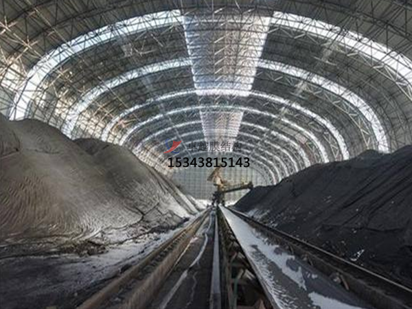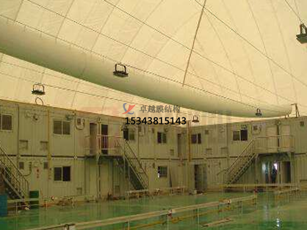 2、嘉峪關祁連山水泥建材充氣膜結構罩棚施工案例