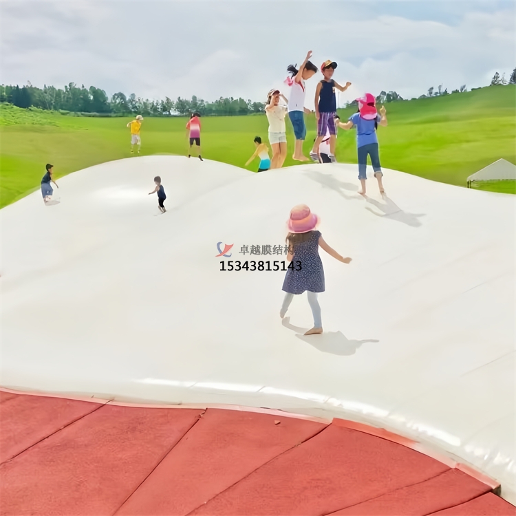 蹦蹦云是新型無動力兒童互動體驗設(shè)施,似朵朵白云、形象新穎;整體采用的膜結(jié)構(gòu)拼接而成。可蹦、可滑、可爬。適合很多年齡段兒童和成人使用。