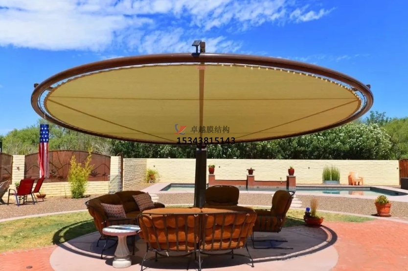 在休閑廣場(chǎng)等公共場(chǎng)所的建設(shè)中,一些功能性的景觀設(shè)施必不可少,如景觀遮陽(yáng)棚、景觀連廊及景觀標(biāo)識(shí)建筑等。這就不得不提膜結(jié)構(gòu),作為新型的建筑材料和設(shè)計(jì)概念的結(jié)合體,膜結(jié)構(gòu)已占據(jù)了公共場(chǎng)所的建設(shè)中的一席之地。