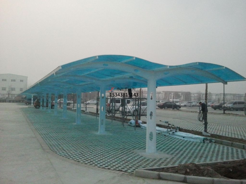商業(yè)廣場(chǎng)雨棚搭建設(shè)計(jì)特別適合用來建造城市標(biāo)志性建筑的屋頂,如體育與娛樂性場(chǎng)館,需有廣告效應(yīng)的商場(chǎng)、餐廳等。城市的交通樞紐是城市命脈的關(guān)鍵性建筑,使用功能要求建筑物各組成單元的標(biāo)志明確。因而近來年,這類建筑越來越多采用膜結(jié)構(gòu)。建筑膜材料的使用壽命為 25 年以上。在使用期間,在雪或風(fēng)荷載作用下均能保持材料的力學(xué)形態(tài)穩(wěn)定不變。建成于 1973 年的美國(guó)加州 La Verne 大學(xué)的學(xué)生活動(dòng)中心是已有 23 年歷史的商業(yè)廣場(chǎng)雨棚搭建建筑.跟蹤測(cè)試與材料的加載與加速氣候變化的試驗(yàn),證明它的膜材料的力學(xué)性能與化學(xué)穩(wěn)定性指標(biāo)下降了 20 %至 30 %,但仍可正常使用。膜的表層光滑,具有彈性,大氣中的灰塵、化學(xué)物質(zhì)的微粒極難附著與滲透,經(jīng)雨水的沖刷建筑膜可恢復(fù)其原有的清潔面層與透光性。