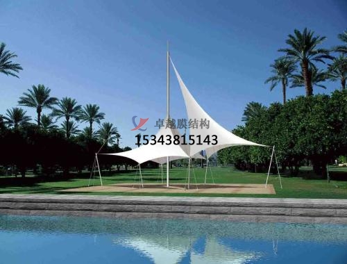pvc膜材由聚氯乙烯(pvc)涂層和聚酯纖維基層復(fù)合而成,應(yīng)用廣泛,價(jià)格適中。一般pvc膜的耐用年限,依使用環(huán)境不同在10~12年。為了改善pvc膜材的耐侯性,近年來(lái)已研發(fā)出以氟素系樹(shù)脂在pvc涂層材的表面再作處理,以改善其耐侯性及防污性的新膜材。